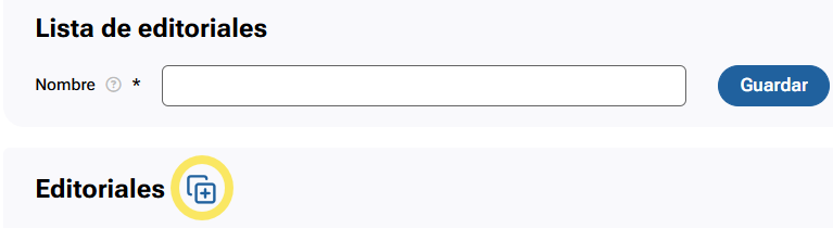 - Creación de listas de editoriales, haciendo clic en el icono [+] junto al texto Editoriales (Menú